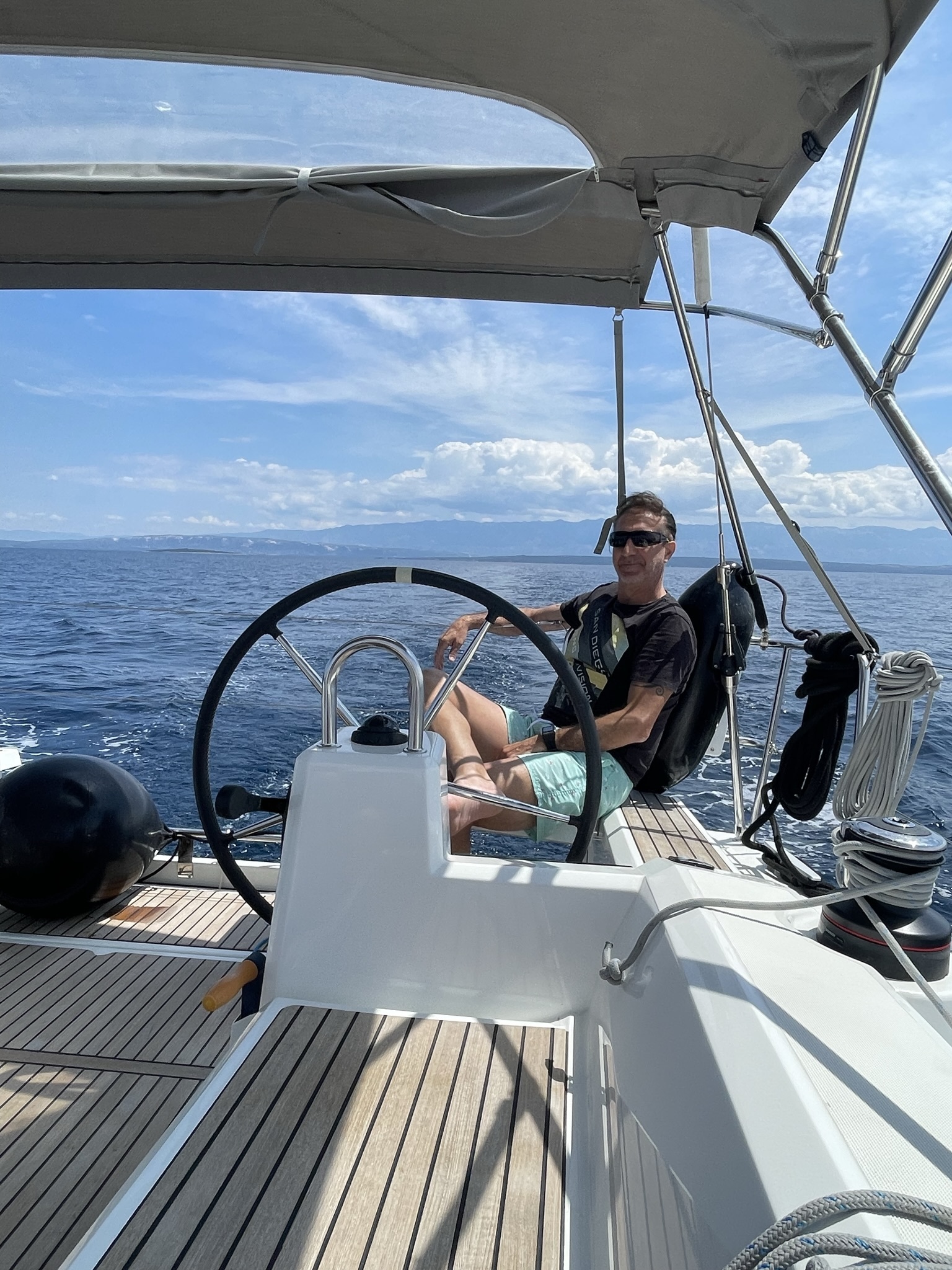 Ab dem dritten Segeltag, wir starteten frühmorgens ab Stadthafen Mali Losinji, stellte sich eine Bora mit bis 35kn ein die uns den Rest der Woche begleitete. Meist segelten wir leicht Vorwind und langen Wellen von bis 3m Höhe. Mit dem richtig Reff eigentlich ganz angenehm. Sonne, Wind, eine gute Yacht und Team, Besser geht nicht !