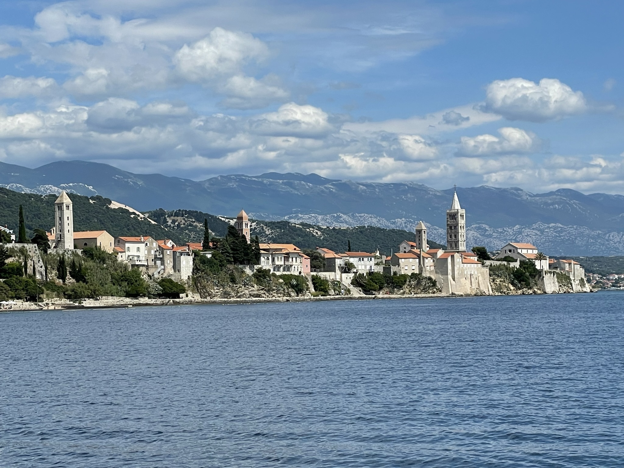 Die Gegend faszinierte uns durch kurz wechselnde Landschaften, mal begrünt und friedlich und dann wieder felsig durch die Bora schroff gefräst. Zwischendurch immer wieder blaue, geschützte Bade-Buchten in der Nähe von FKK-Anlagen die zum verweilen und tauchen einluden.